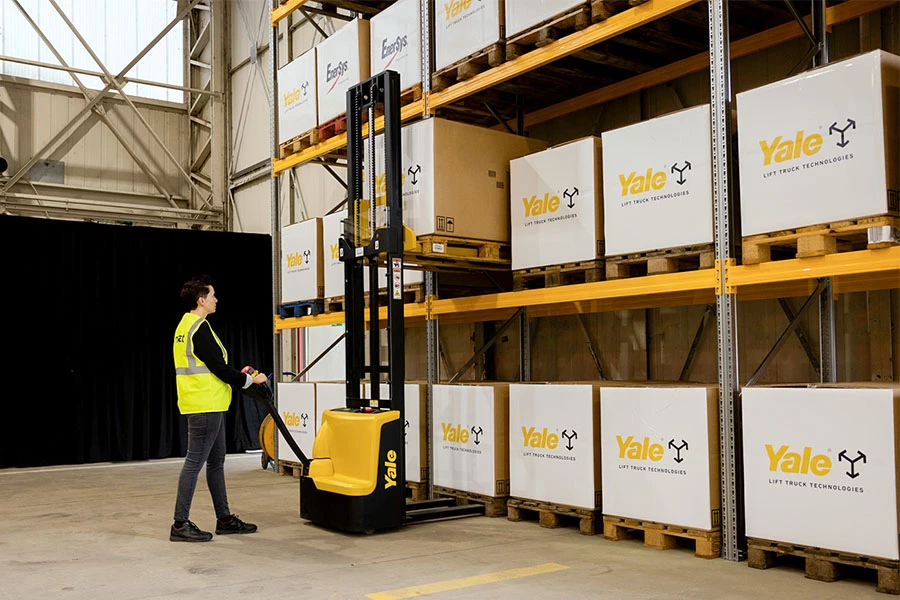 - Maggiore flessibilità grazie al caricabatterie integrato da 24 V/15 A agli ioni di litio e al connettore di facile accesso, che permette di collegare questo stoccatore Yale ovunque. L'indicatore della batteria e l'avviso di ricarica consentono agli operatori di avere il controllo e aiutano i magazzini ad effettuare cariche di biberonaggio dello stoccatore, ottimizzando i tempi di piena operatività, con la batteria che si ricarica completamente in appena quattro ore.